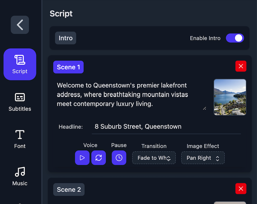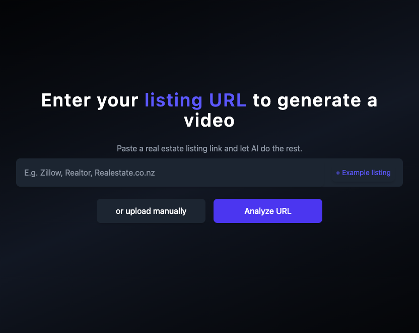 Input your listing URL or key property details, and our AI will generate an attention-grabbing script for your next property video.